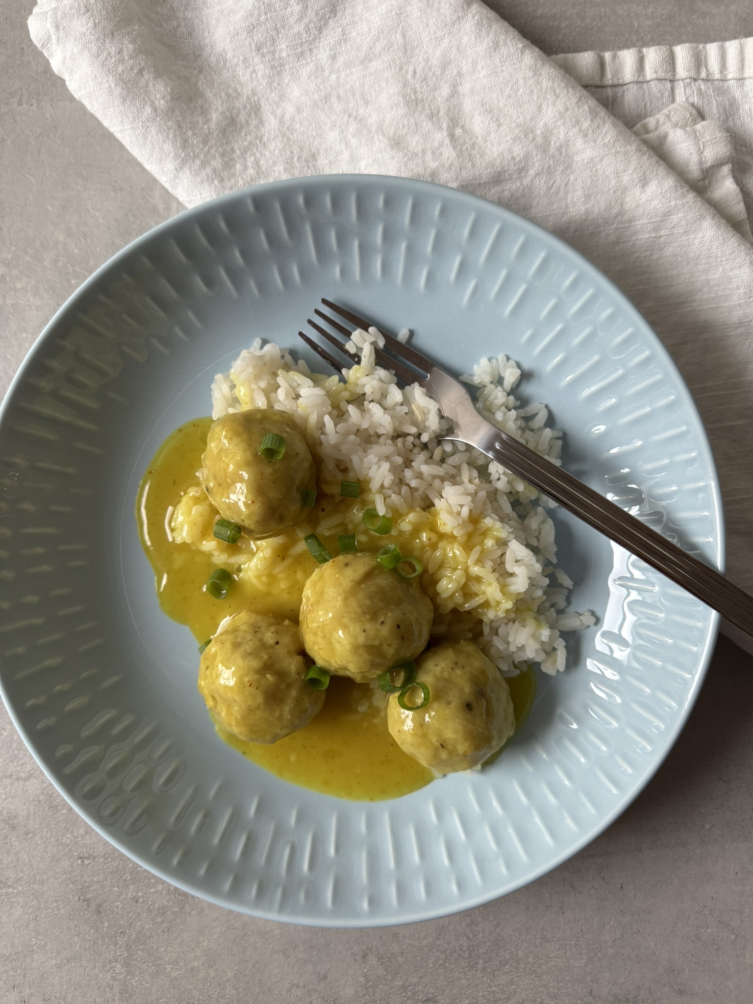 Koyr 1,5 L av vatn í eina grýtu saman við høsnabótamolunum og fá uppá kók. Tá vatnið kókar, koyr síðani kjøtbollarnir varliga í, og lat kókað í uml. 20-25 min.