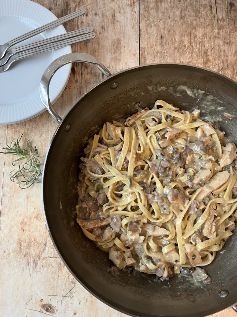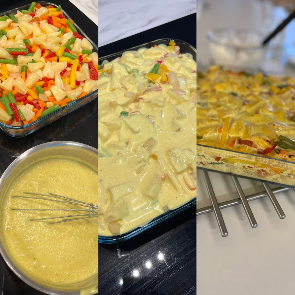 Høsnarungabringa við pikant ost og bacon wrap, søteplakips og sauteraðum gularøtum