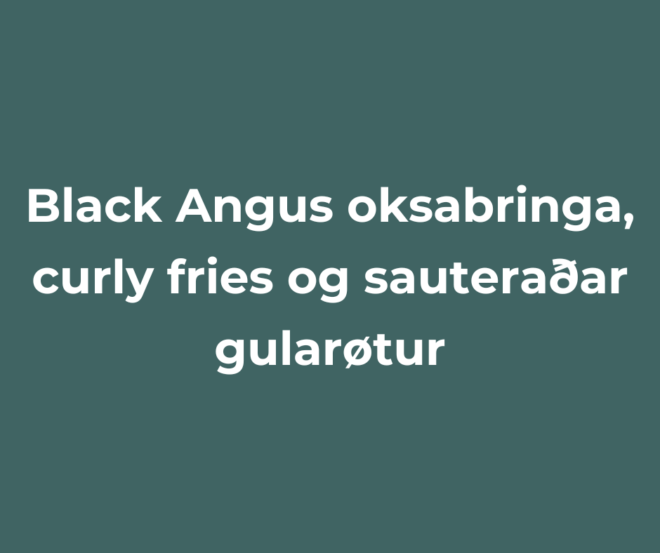 Black Angus oksabringa, curly fries og sauteraðar gularøtur